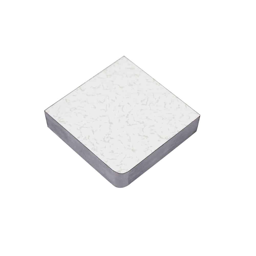 The base material is made of non-toxic and unbleached plant fiber as a reinforcement material, combined with calcium sulfate crystals, and pressed by pulse. The bottom is pasted with high-quality galvanized steel sheet or embossed aluminum foil, the four sides are sealed with static conductive edges, and the surface is bonded with ceramic , Marble and other different finishes. This product has ultra-high load-bearing capacity, superior waterproof and fireproof performance, and has the characteristics of sound insulation, vibration isolation, pollution resistance, wear resistance, and chemical corrosion resistance.